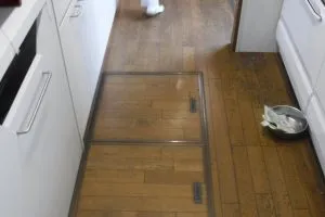 「ご飯を作っている時が寒い・・・」とのお悩みを解決するために、床暖房を設置の工事を行いました。