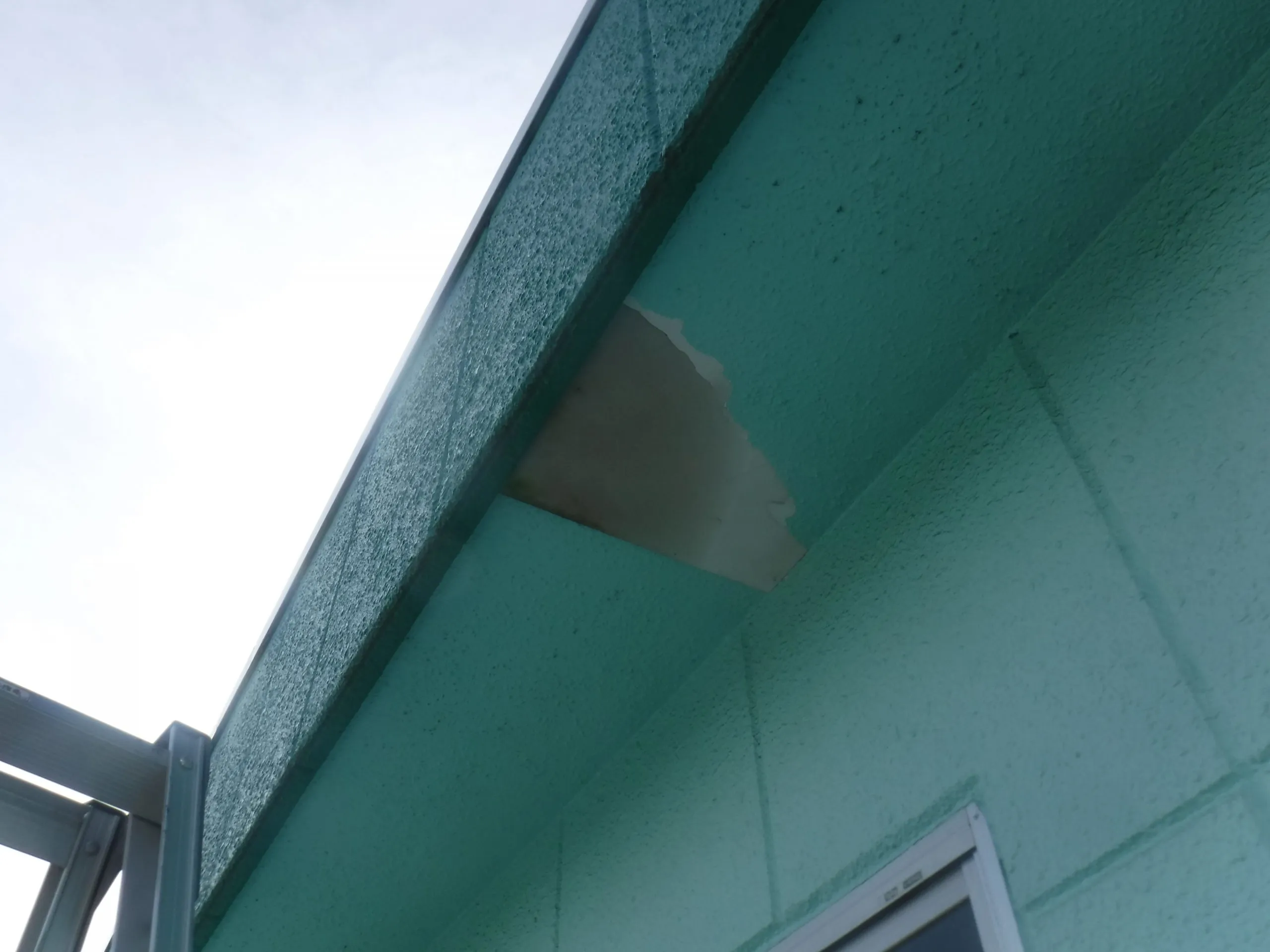 軒の天井部分が雨漏りして塗装がはがれてしまっております。